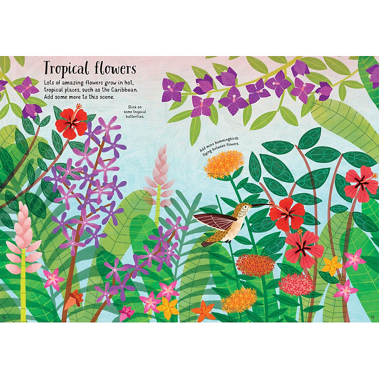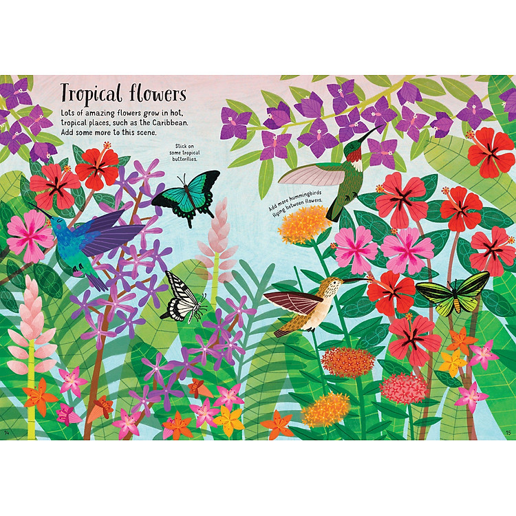 This charming book is just waiting to be filled with beautiful flower stickers. It includes colourful scenes of all kinds of gorgeous meadows, woodlands and gardens, all brimming with birds, bees, bugs and butterflies. With labels for the stickers, there’s lots to learn and talk about.