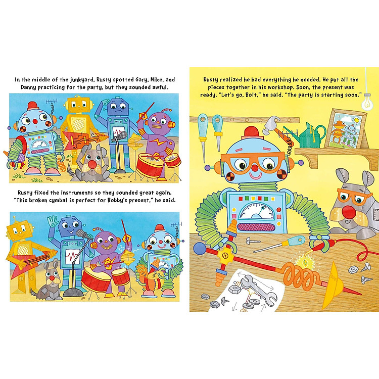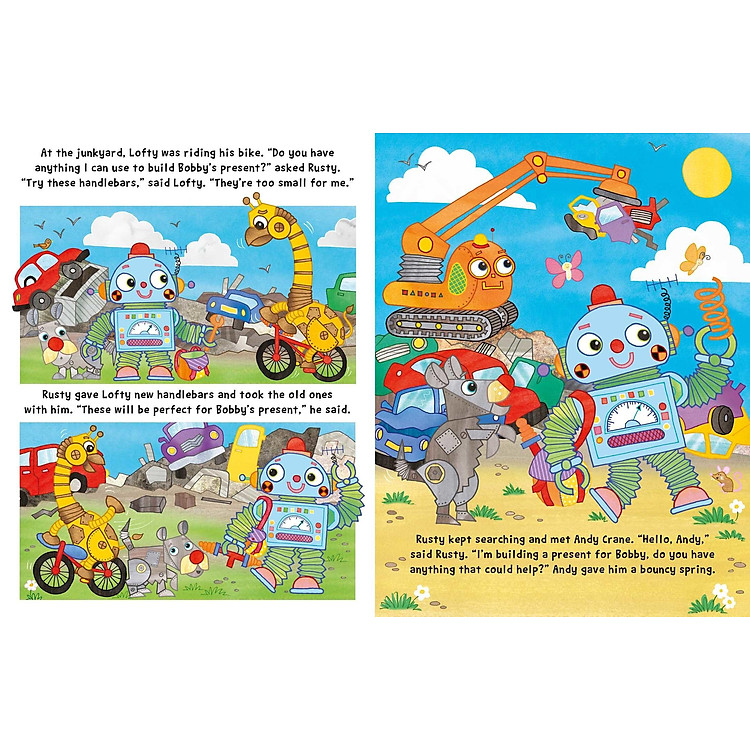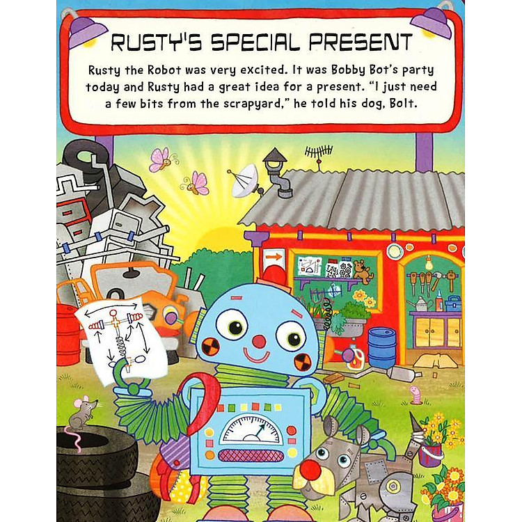 It’s nearly time for Bobby Bot’s party. Rusty has a great idea for a present, but can he find everything he needs to build it With over 20 pieces to put together so you can build your own Robot, this book is perfect for an interactive storytime.