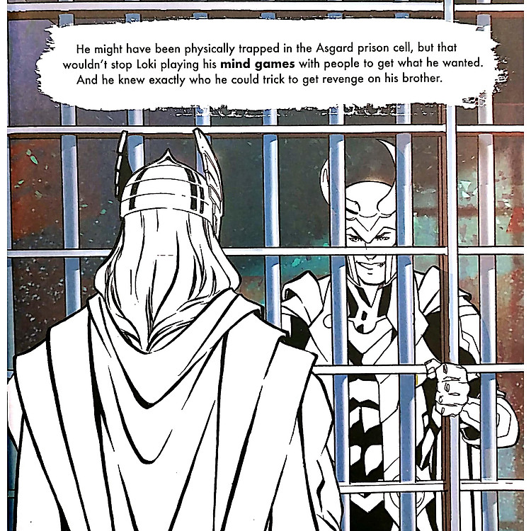 Colour in the story and enjoy the adventure as the Avengers battle Super Villain Thanos