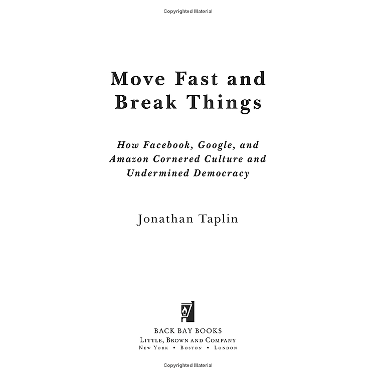 - Tiêu đề sách: “Move Fast And Break Things: How Facebook, Google, And Amazon Cornered Culture And Undermined Democracy”.