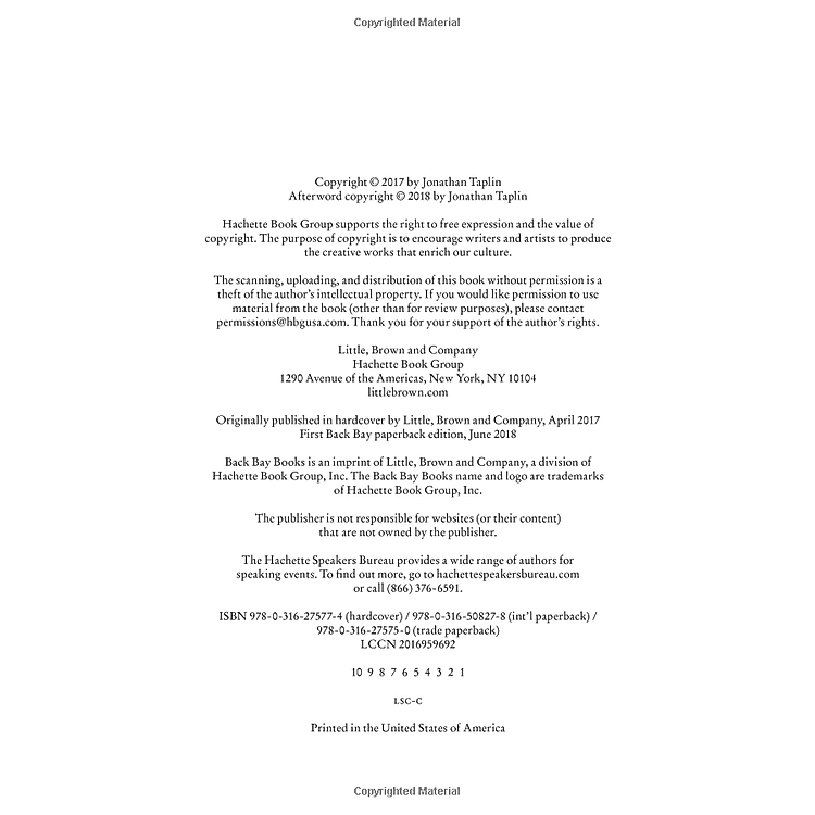 - Tác giả: Jonathan Taplin, một nhà sản xuất âm nhạc và phim với 50 năm kinh nghiệm.