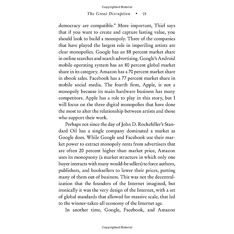 - Nội dung chính: Phê phán sự độc quyền của Google, Amazon và Facebook trong việc định hình văn hóa và đe dọa nền dân chủ.