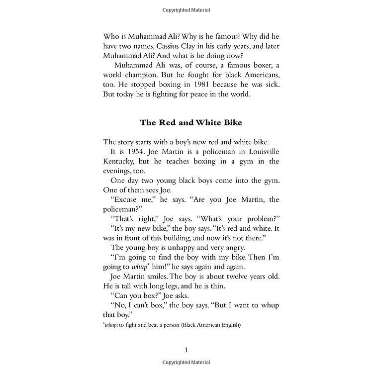 Bạn đang khám phá một cuốn sách tiếng Anh? Trong trường hợp này, Muhammad Ali: Level 1 có thể trở thành cuốn sách bạn nên có trong kệ. English books luôn đa dạng thể loại, từ fiction, non-fiction, self-help, science, business cho đến văn học kinh điển, kỹ năng sống, sách thiếu nhi. Muhammad Ali: Level 1 là một trong những cuốn đáng đọc, giúp mở rộng vốn từ vựng.