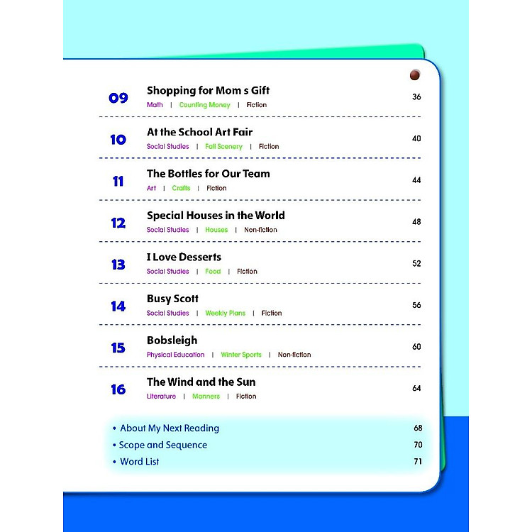 - My Next Reading là series đọc sáu cấp độ cho trẻ em, tập trung vào các chủ đề liên quan đến môn học như Khoa học, Xã hội, Nghệ thuật.