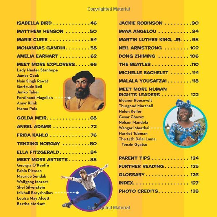 - Sách bao gồm các nhân vật như Malala Yousafzai và Neil Armstrong.
