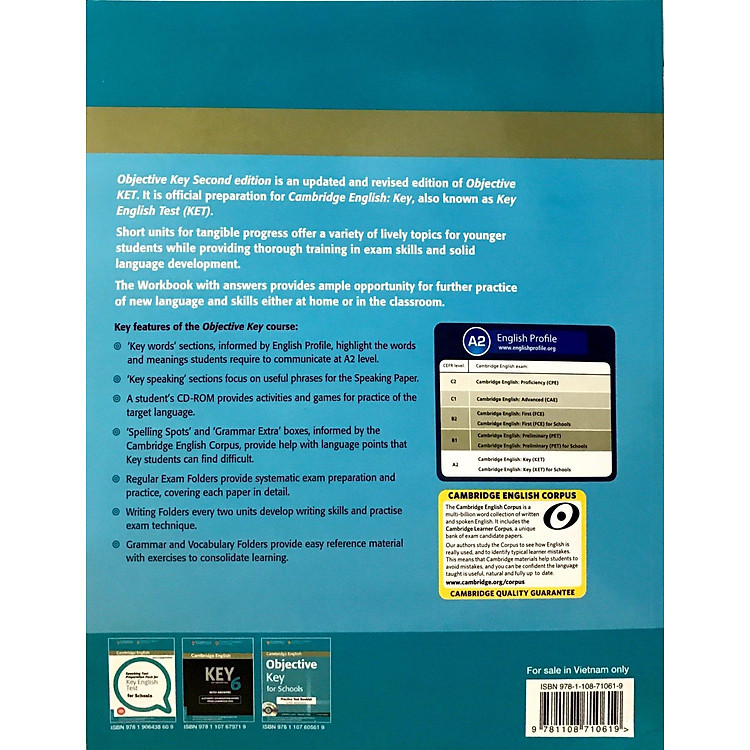 Objective Key Workbook With Answers Vietnam Edition 2 Objective Key Second edition is an update and revised and revised edition of Objective KET. It is oficial preparation for Cambridge English: Key, also known as Key English Test (KET). Short units for tangible progress offfer a variety of variety of lively topics for younger students wwhile providing thorough training in exam skills and solid language development. The Workbook with answers provides ample opportunity for further practice of new language and skills either at home or in the classroom.