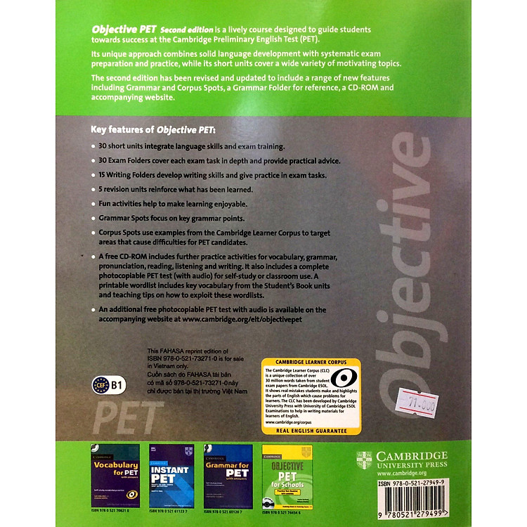 Để tiết kiệm thời gian, DocGia.vn đã so sánh giá bán Objective PET Workbook từ nhiều cửa hàng uy tín. Bạn chỉ cần chọn nơi phù hợp.