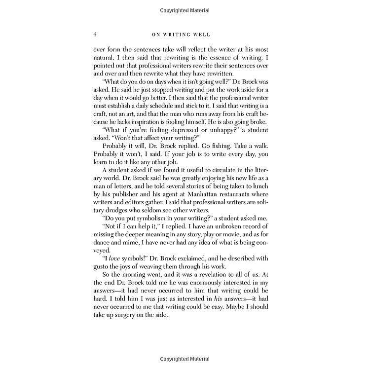 On Writing Well has been praised for its sound advice, its clarity and the warmth of its style. It is a book for everybody who wants to learn how to write or who needs to do some writing to get through the day, as almost everybody does in the age of e-mail and the Internet. Whether you want to write about people or places, science and technology, business, sports, the arts or about yourself in the increasingly popular memoir genre, On Writing Well offers you fundamental priciples as well as the insights of a distinguished writer and teacher. With more than a million copies sole, this volume has stood the test of time and remains a valuable resource for writers and would-be writers.