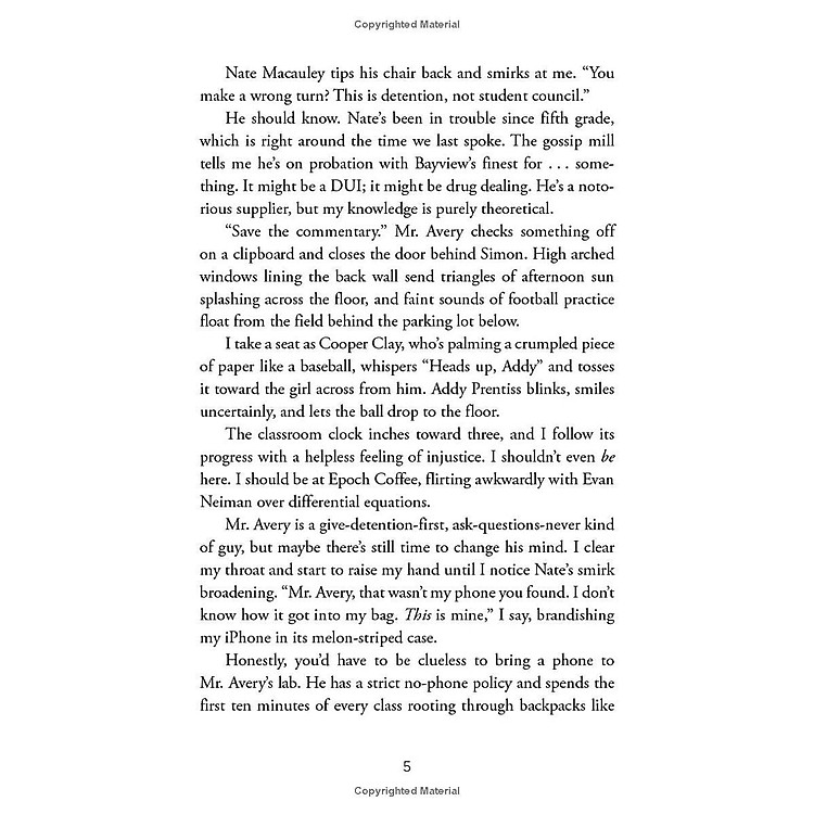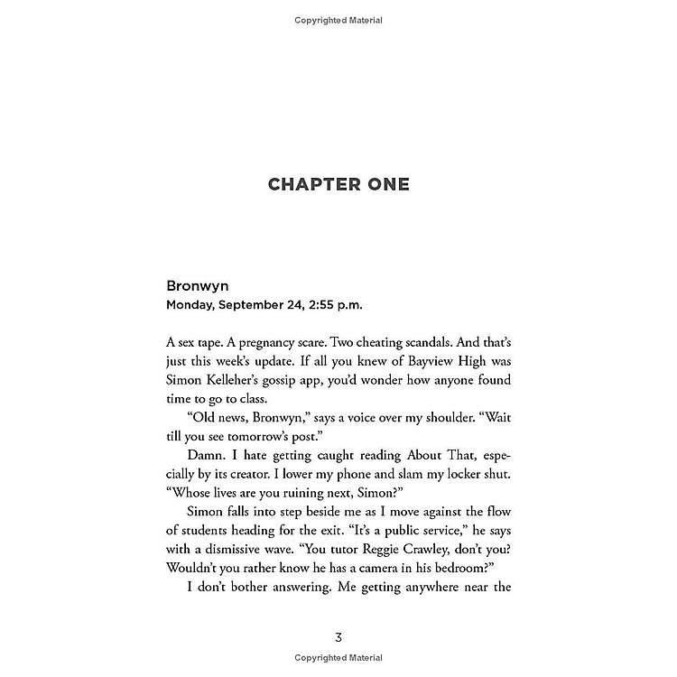 Only, Simon never makes it out of that classroom. Before the end of detention Simon’s dead. And according to investigators, his death wasn’t an accident. On Monday, he died. But on Tuesday, he’d planned to post juicy reveals about all four of his high-profile classmates, which makes all four of them suspects in his murder. Or are they the perfect patsies for a killer who’s still on the loose?