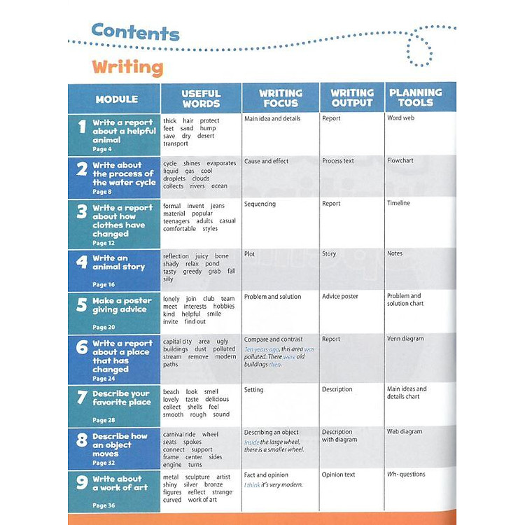 - Giới thiệu nhiều thể loại văn bản, hướng dẫn chiến lược viết và chính tả cơ bản.