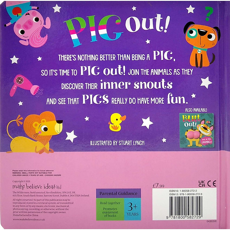 Bring out your inner snout and try being a pig! In this hilarious rhyme, a cheeky pig explains why being a pig is the best . . . and encourages the other animals to dye their hair pink, oink and try and be more like him! This funny board book has a squishy pig snout cut through to the cover, and Stuart Lynch’s bright, modern illustrations provide plenty to look at on every page! PIG OUT BOARD BOOK WITH SQUISHY SNOUT