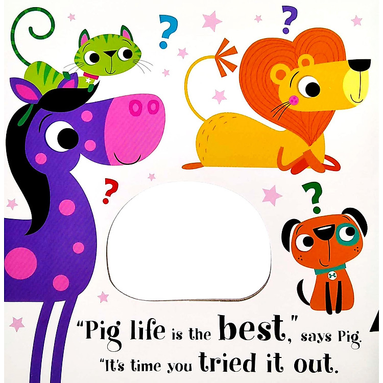 - Bìa sách có phần mũi heo mềm mại để trẻ em cầm nắm.