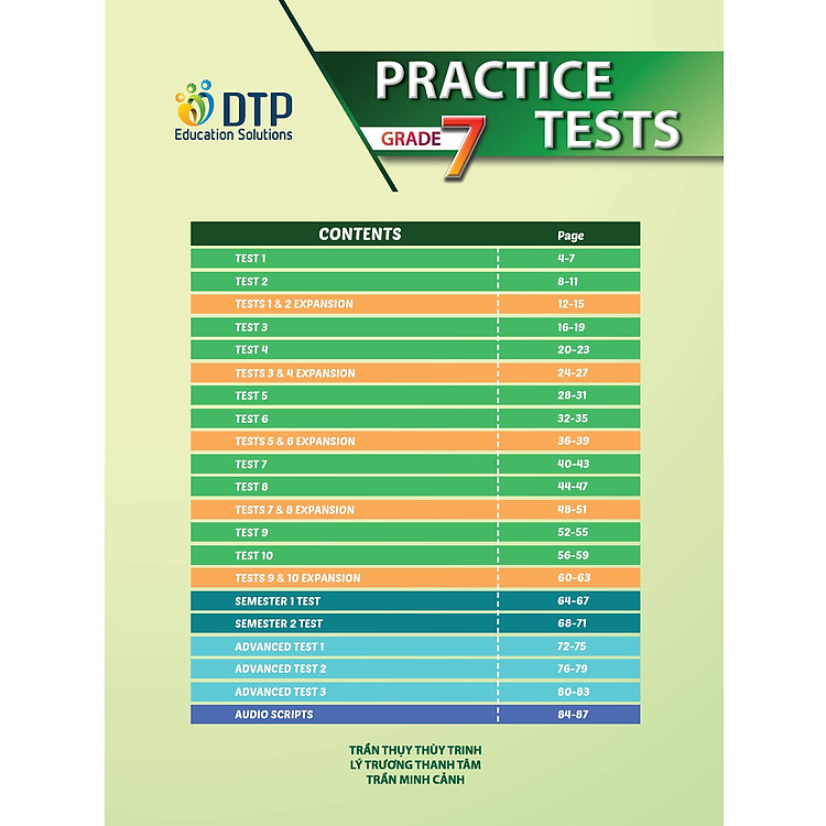 - Practice Tests là bộ đề kiểm tra Tiếng Anh gồm 4 cấp độ dành cho học sinh trung học cơ sở. Bộ sách này được biên soạn theo Chương Trình của Bộ Giáo dục & Đào tạo giúp các em làm quen với các bài kiểm tra đánh giá hiện hành, đồng thời rèn luyện kỹ năng và củng cố kiến thức tiếng Anh.