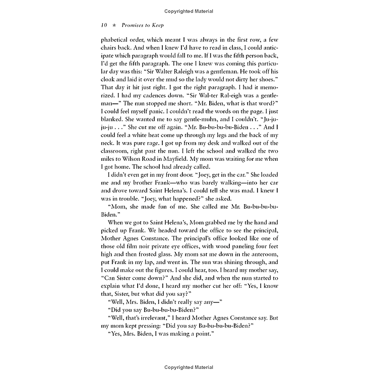 “Nearly forty years after I first got involved, I remain captivated by the possibilities of politics and public service. In fact, I believe that my chosen profession is a noble calling. That’s why I wanted to be a part of it.” -Joe Biden As a United States senator from Delaware since 1973, Joe Biden has been an intimate witness to the major events of the past four decades and a relentless actor in trying to shape recent American history. He has seen up close the tragic mistake of the Vietnam War, the Watergate and Iran-contra scandals, the fall of the Berlin Wall, the reunification of Germany, the disintegration of the Soviet Union, the aftermath of the 9/11 attacks, a presidential impeachment, a presidential resignation, and a presidential election decided by the Supreme Court. He’s observed Nixon, Ford, Carter, Reagan, Clinton, and two Bushes wrestling with the presidency; he’s traveled to war zones in Europe, the Middle East, and Africa and seen firsthand the devastation of genocide. He played a vital role by standing up to Ronald Reagan’s effort to seat Judge Robert Bork on the Supreme Court, fighting for legislation that protects women against domestic violence, and galvanizing America’s response (and the world’s) to Slobodan Milosevic’s genocidal march in the Balkans. In “Promises to Keep,” Biden reveals what these experiences taught him about himself, his colleagues, and the institutions of government. With his customary candor, Biden movingly recounts growing up in a staunchly Catholic multigenerational household in Scranton, Pennsylvania, and Wilmington, Delaware; overcoming a demoralizing stutter; marriage, fatherhood, and the tragic death of his wife Neilia and infant daughter Naomi; remarriage and re-forming a family with his second wife, Jill; success and failure in the Senate and on the campaign trail; two life-threatening aneurysms; his relations with fellow lawmakers on both sides of the aisle; and his leadership of powerful Senate committees. Through these and other recollections, Biden shows us how the guiding principles he learned early in life-the obligation to work to make people’s lives better, to honor family and faith, to get up and do the right thing no matter how hard you’ve been knocked down, to be honest and straightforward, and, above all, to keep your promises-are the foundations on which he has based his life’s work as husband, father, and public servant. “Promises to Keep” is the story of a man who faced down personal challenges and tragedy to become one of our most effective leaders. It is also an intimate series of reflections from a public servant who refuses to be cynical about political leadership, and a testament to the promise of the United States. “From the Hardcover edition.”