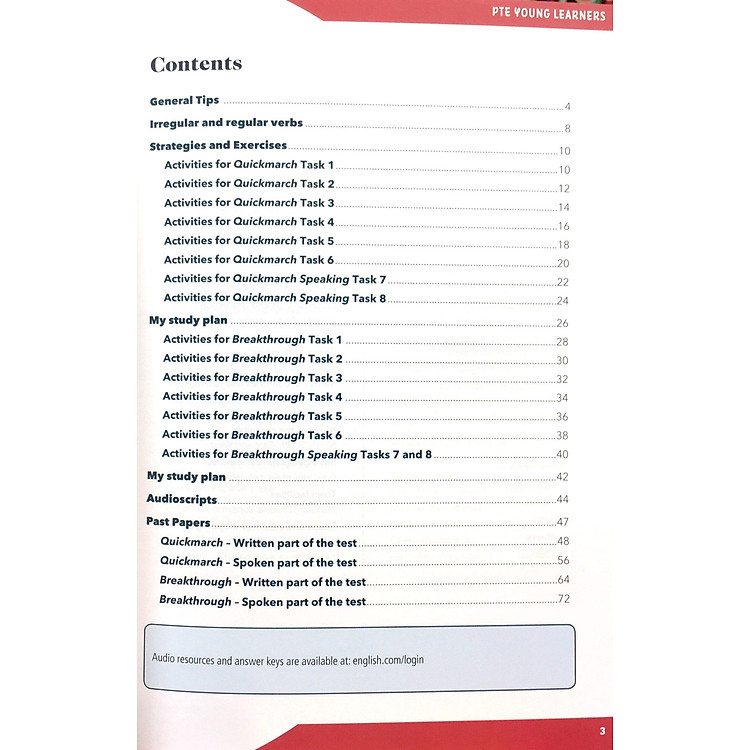 - Sách luyện thi PTE Young Learners dành cho hai trình độ Quickmarch (A1+) và Breakthrough (A2).