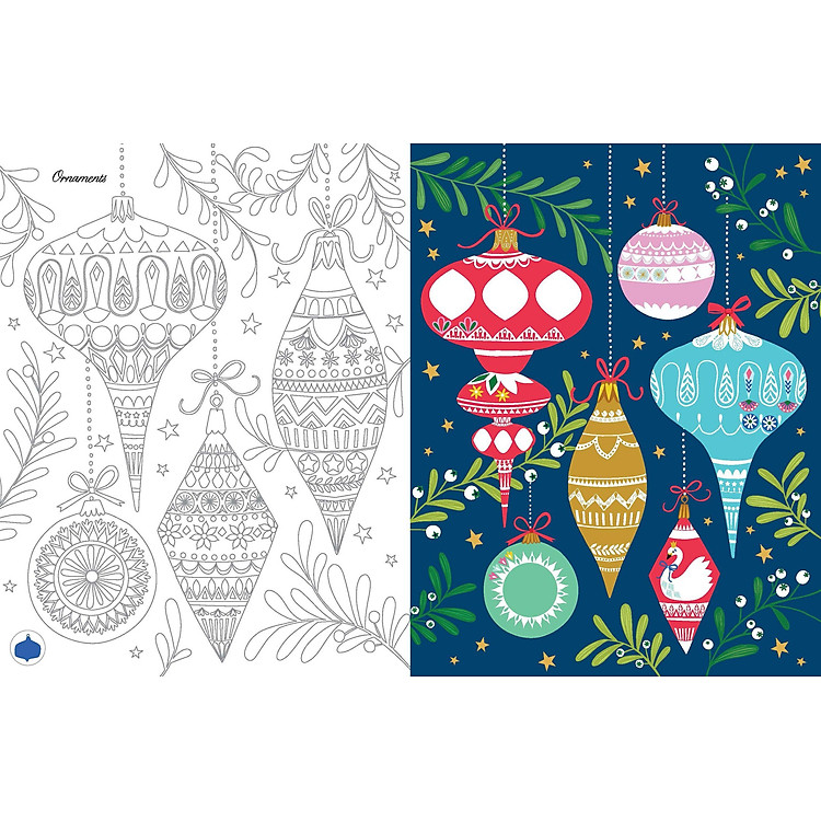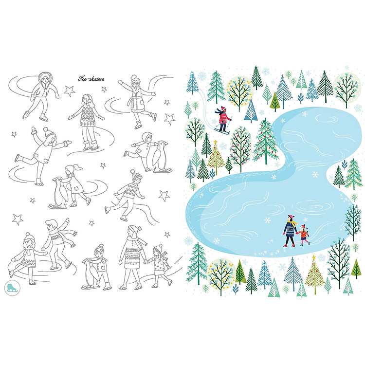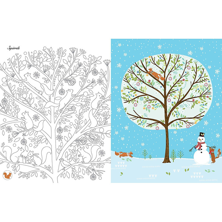 - Mỗi trang đôi có hình vẽ tinh tế và hình ảnh Giáng sinh để sử dụng rub-down transfers.