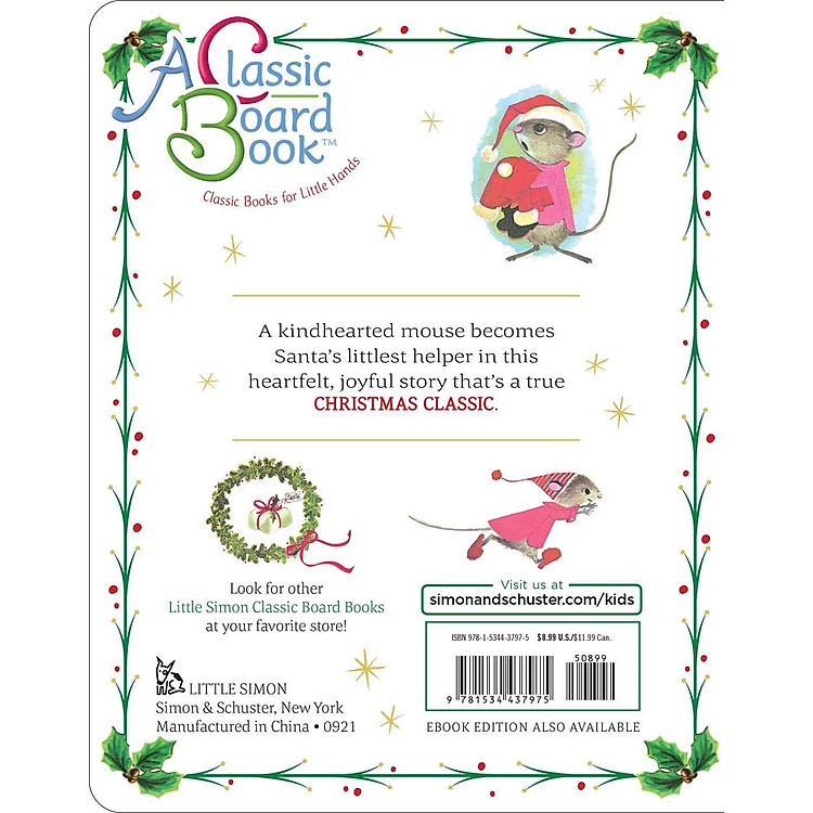 Now available as a Classic Board Book, little ones will love this heartfelt, joyous story of how a kindhearted mouse becomes Santa’s littlest helper in this true Christmas classic.