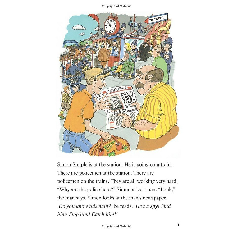 Original / British English Simon Simple is going on holiday and the police are looking for a spy. On the train, Simon meets a beautiful girl. He likes her and she likes him. But the spy is there too. Simon and the police can’t see the spy. Can you?