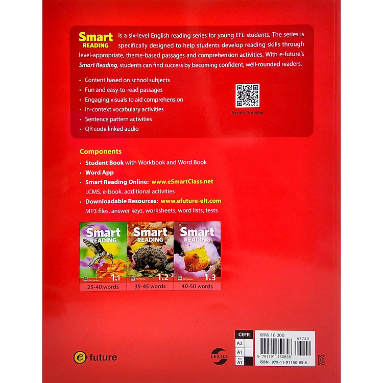 Is a six-level English reading series for young EFL students. The series is specifically designed to help students develop reading skills through level-appropriate, theme-based passages and comprehension activities. With e-future’s Smart Reading, students can find success by becoming confident, well-rounded readers.
