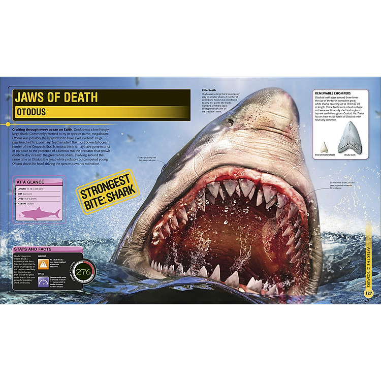 Alongside the amazing images, SuperDinosaur is packed with incredible facts about these extraordinary creatures. Did you know that the fearsome Tyrannosaurus has the most powerful bite of any land animal that has ever lived? Or that the bizarre Amargasaurus had spines that stuck out 60 cm (24 in) from its neck? Or perhaps you fancy your chances in a staring competition with Temnodontosaurus – just be warned, its eyes are 25 cm (9.8 in) wide! Features on fascinating fossils and the latest scientific techniques will show you exactly how paleontologists piece together information about how dinosaurs would have looked and lived.