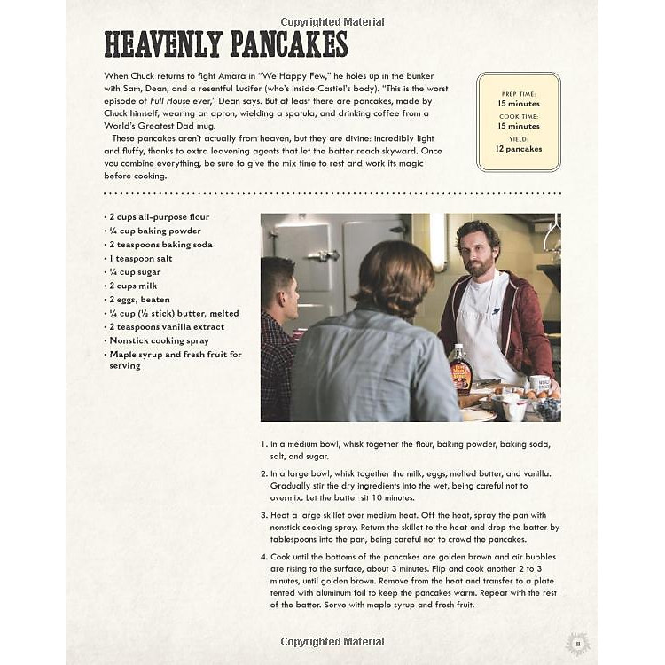 - Cuốn sách “Supernatural: The Official Cookbook” mang đến những công thức nấu ăn hấp dẫn từ series truyền hình nổi tiếng Supernatural.