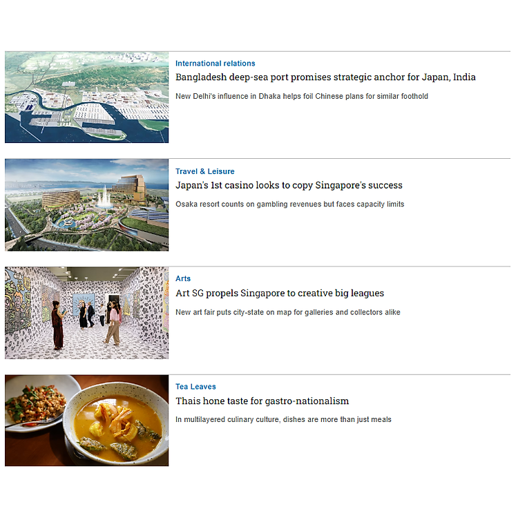 - Là thương hiệu truyền thông lớn và được kiểm duyệt nội dung hằng tuần với dạng thông tin chính thống, được thu thập từ các phóng viên uy tín trên toàn Châu Á, là nguồn trích xuất cho nhiều nhà báo tại Việt Nam.