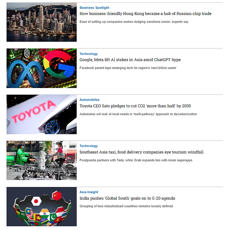 - Tạp chí Nikkei Asia, đến từ Nhật Bản, chuyên về kinh tế, công nghệ và chính trị khu vực châu Á – Thái Bình Dương.