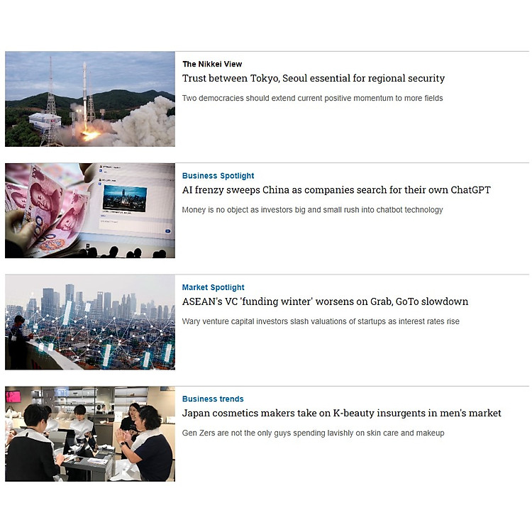 - Tạp chí Nikkei Asia là ấn phẩm tiếng Anh nổi tiếng, chuyên về kinh tế, công nghệ, chính trị tại khu vực châu Á – Thái Bình Dương.