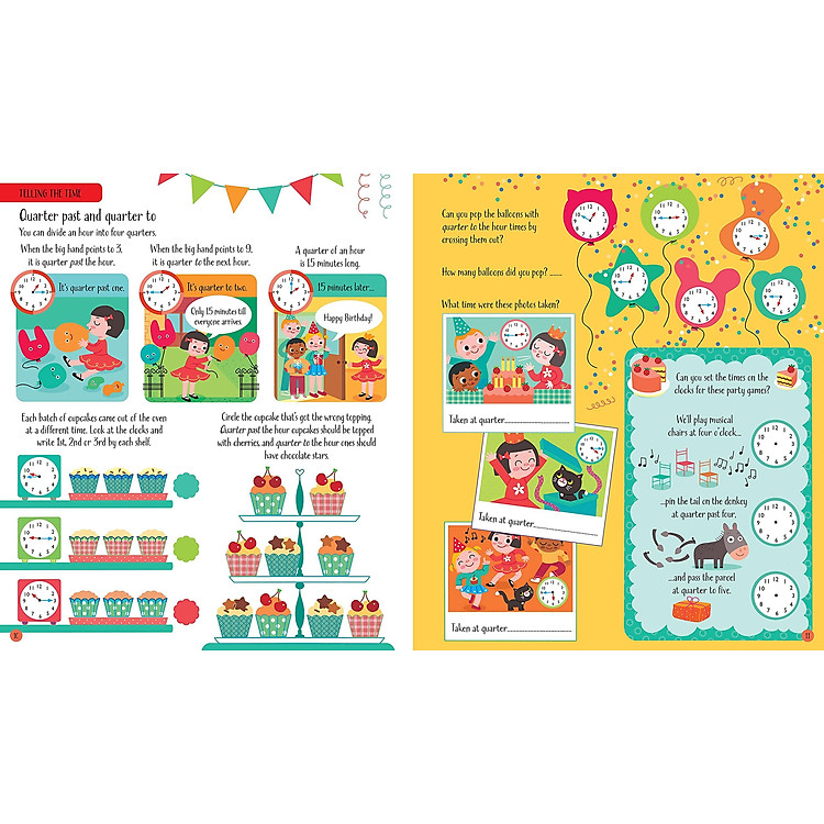- Sách “Telling The Time Activity Book” giúp trẻ em học cách đọc đồng hồ một cách thú vị.