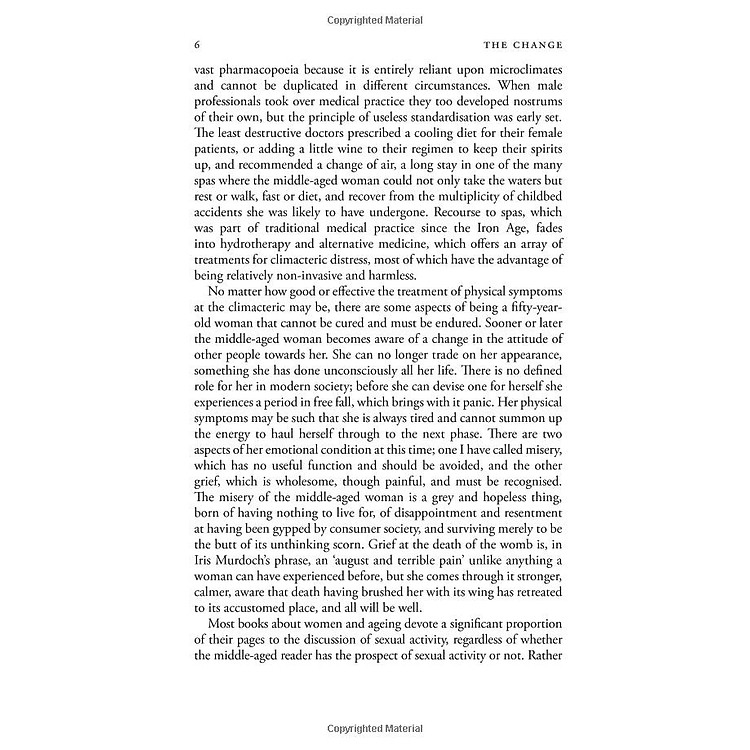 Now more than ever, amid the clamour of online chatrooms and promotions for a vast array of alternative therapies, the individual woman has to manage her passage through menopause for herself. In The Change, Germaine Greer provides a common-sense guide to a very interesting and important stage of women’s lives.