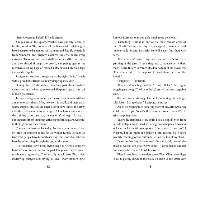 Sixteen-year-old Deka lives in Otera, a deeply patriarchal ancient kingdom, where a woman’s worth is tied to her purity, and she must bleed to prove it. But when Deka bleeds gold – the colour of impurity, of a demon – she faces a consequence worse than death. She is saved by a mysterious woman who tells Deka of her true nature: she is an Alaki, a near-immortal with exceptional gifts. The stranger offers her a choice: fight for the Emperor, with others just like her, or be