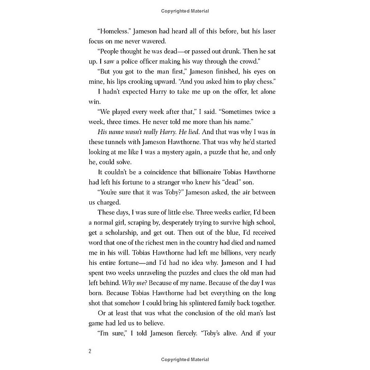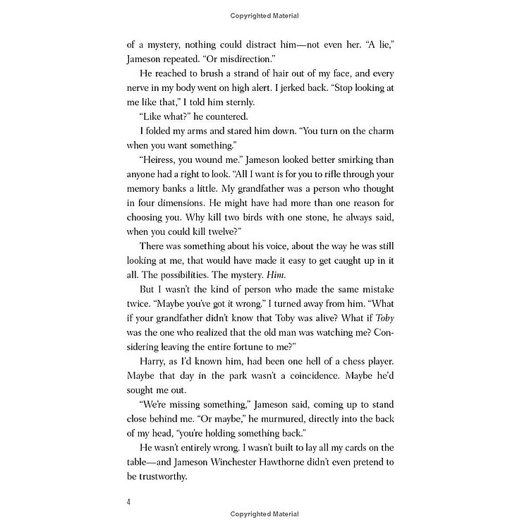 The Inheritance Games ended with a bombshell, and now heiress Avery Grambs has to pick up the pieces and find the man who might hold the answers to all of her questions—including why Tobias Hawthorne left his entire fortune to Avery, a virtual stranger, rather than to his own daughters or grandsons.