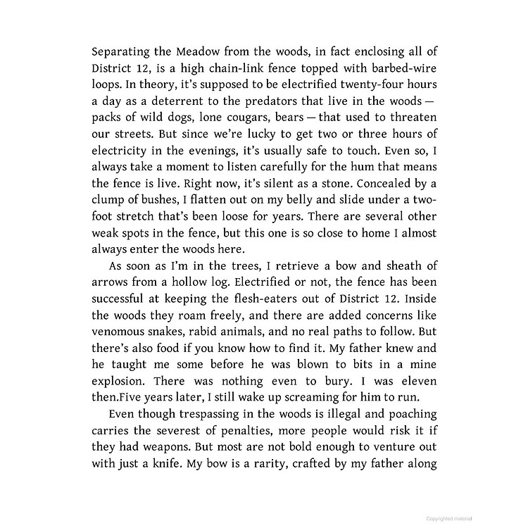 Even at the age of sixteen, Katniss Everdeen knows it takes hard work, keen observation, and inner fortitude to survive in the world. Her home, District 12, is under the merciless rule of the Capitol, continually forced to pay after losing a long-ago civil war in the nation of Panem.