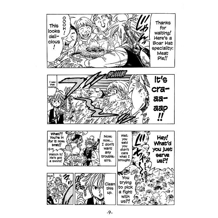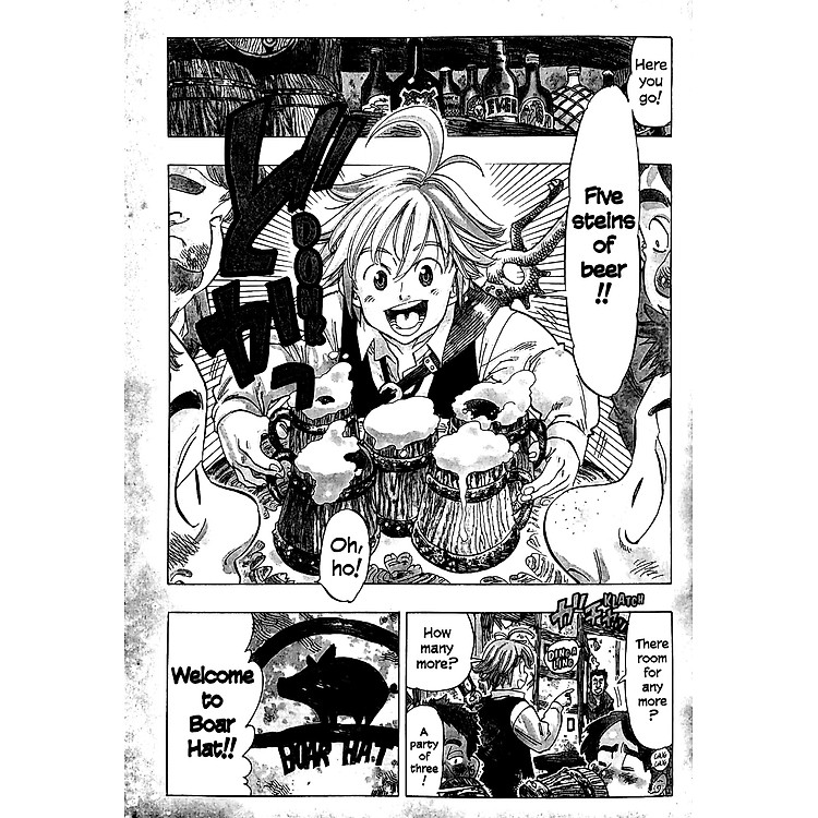 - Nhân vật chính: Meliodas – một chủ quán trọ với một con lợn biết nói, không có thanh kiếm thực sự.