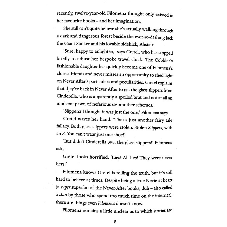 Filomena Jefferson-Cho teams up once more with dashing Jack Stalker, adorable Alistair and glamorous Gretel for another adventure in the land of Never After, this time to get the glass slipper back from Cinderella!