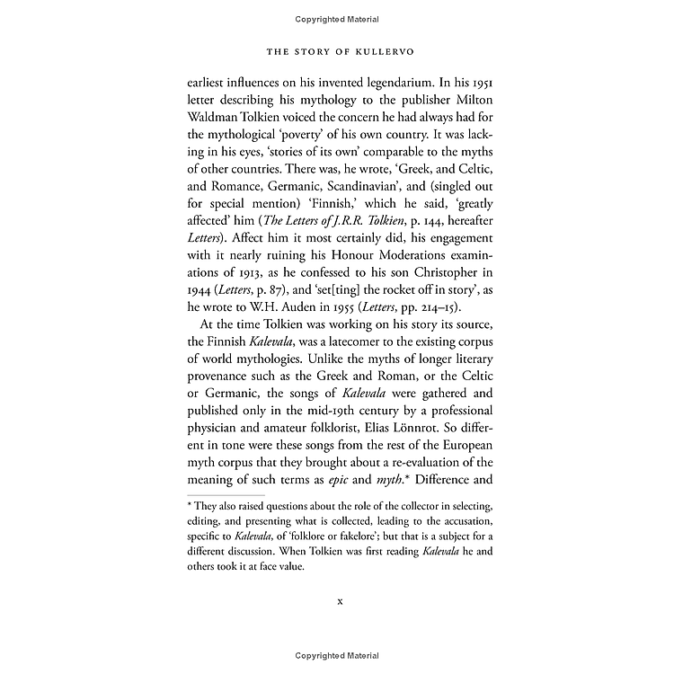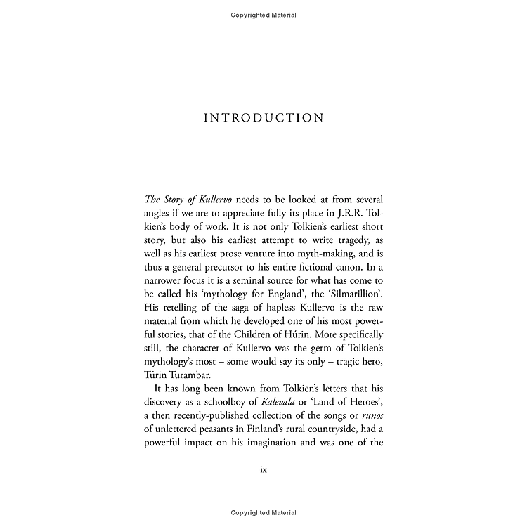 Tolkien wrote that The Story of Kullervo was ‘the germ of my attempt to write legends of my own’, and was ‘a major matter in the legends of the First Age’; his Kullervo was the ancestor of Turin Turambar, tragic incestuous hero of The Silmarillion. In addition to being a powerful story in its own right, The Story of Kullervo – published here for the first time with the author’s drafts, notes and lecture-essays on its source-work, The Kalevala, is a foundation stone in the structure of Tolkien’s invented world.