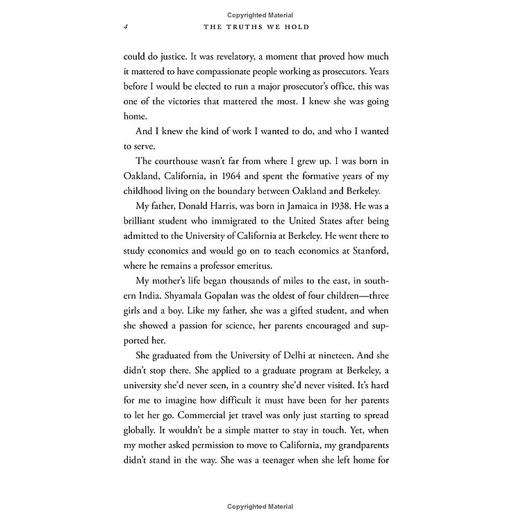 By reckoning with the big challenges we face together, drawing on the hard-won wisdom and insight from her own career and the work of those who have most inspired her, Kamala Harris offers in THE TRUTHS WE HOLD a master class in problem solving, in crisis management, and leadership in challenging times. Through the arc of her own life, on into the great work of our day, she communicates a vision of shared struggle, shared purpose, and shared values. In a book rich in many home truths, not least is that a relatively small number of people work very hard to convince a great many of us that we have less in common than we actually do, but it falls to us to look past them and get on with the good work of living our common truth. When we do, our shared effort will continue to sustain us and this great nation, now and in the years to come.