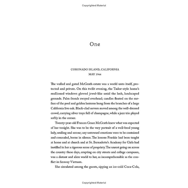 “Women can be heroes”. When twenty-year-old nursing student, Frances “Frankie” McGrath, hears these unexpected words, it is a revelation. Raised on California’s idyllic Coronado Island and sheltered by her conservative parents, she has always prided herself on doing the right thing, being a good girl. But in 1965 the world is changing, and she suddenly imagines a different path for her life. When her brother ships out to serve in Vietnam, she impulsively joins the Army Nurses Corps and follows his path.
