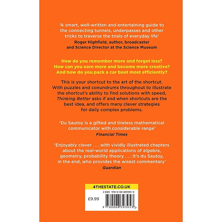 How do you remember more and forget less? How can you earn more and become more creative just by moving house? And how do you pack a car boot most efficiently? This is your shortcut to the art of the shortcut. Mathematics is full of better ways of thinking, and with over 2,000 years of knowledge to draw on, Oxford mathematician Marcus du Sautoy interrogates his passion for shortcuts in this fresh and fascinating guide. Marcus also looks at how you can use shortcuts in investing or how to learn a musical instrument to memory techniques. He talks to, among many, the writer Robert MacFarlane, cellist Natalie Clein and the psychologist Suzie Orbach, asking whether shortcuts are always the best idea and, if so, when they use them. With engaging puzzles and conundrums throughout to illustrate the shortcut’s ability to find solutions with speed, Thinking Better offers many clever strategies for daily complex problems.