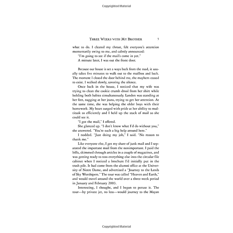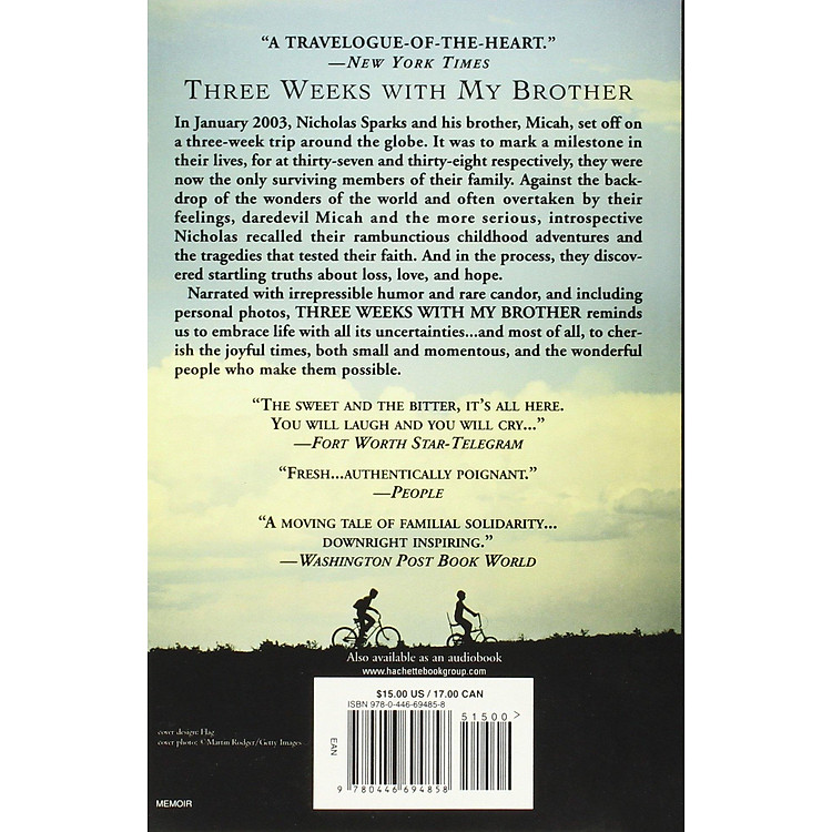 - Tựa đề: “Three Weeks With My Brother” của Nicholas và Micah Sparks.