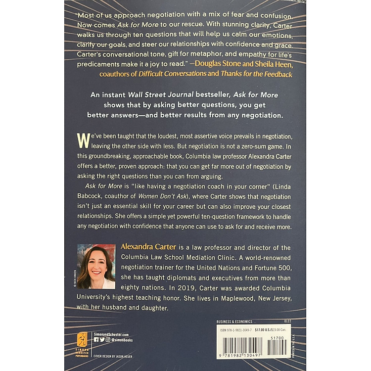 Một cuốn sách bán chạy tức thì của Tạp chí Phố Wall và “niềm vui khi đọc” (Douglas Stone và Sheila Heen, tác giả của Những cuộc trò chuyện khó khăn), Ask for More cho thấy rằng bằng cách đặt những câu hỏi hay hơn, bạn sẽ nhận được câu trả lời tốt hơn – và kết quả tốt hơn từ bất kỳ cuộc đàm phán nào.