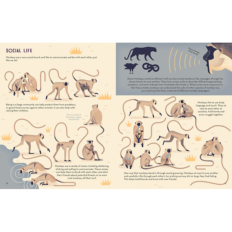 Với hơn 250 loài sinh sống trên hành tinh của chúng ta, cuốn sách này khám phá nhiều loại khỉ khác nhau từ loài khỉ nhỏ nhất Pygmy Marmoset đến loài Mandrill lớn nhất, đồng thời cung cấp tất cả thông tin bạn muốn biết và hơn thế nữa. Khám phá xem khỉ từ đâu đến, cách chúng chuyền từ cây này sang cây khác và tại sao chúng đánh nhau và chơi với nhau. Sau khi đọc cuốn sách được minh họa đẹp mắt này, bạn sẽ sớm phát cuồng vì lũ khỉ!