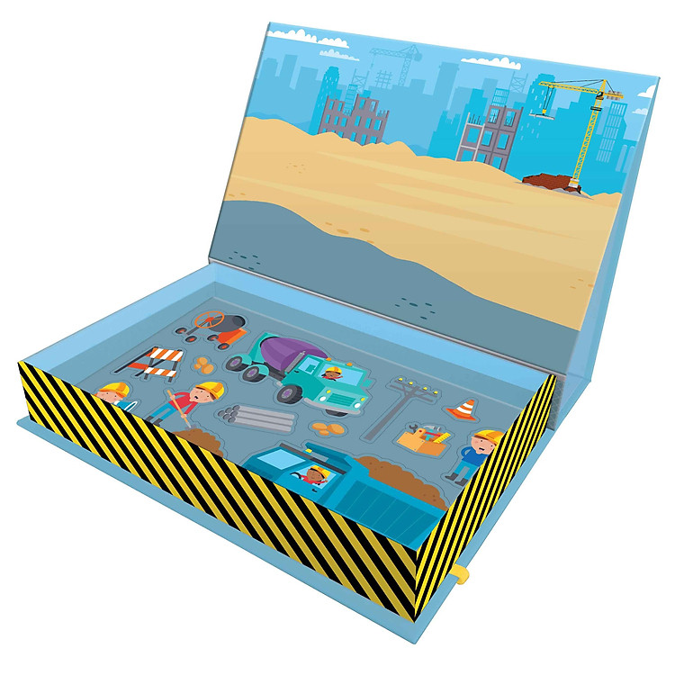 - Bao gồm nền từ tính cho phép trẻ tạo ra các cảnh xây dựng với xe tải và máy xúc yêu thích.