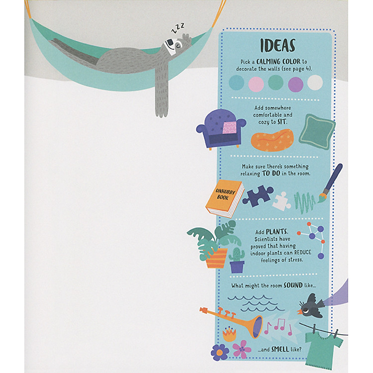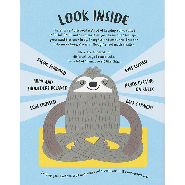 Bây giờ hãy thở và thư giãn. Cuốn sách viết về hoạt động này là tất cả về việc dành một chút thời gian để hít thở, tập trung và bình tĩnh, với sự giúp đỡ của một số con lười thân thiện. Hãy thử tập yoga tại chỗ, tập tô màu trong những tiếng kêu nhẹ nhàng hoặc tham gia một chuyến thám hiểm cảm giác mạnh – dành một chút thời gian yên tĩnh, chỉ dành cho bạn. Với các liên kết đến Usborne Quicklinks với các trang web được lựa chọn đặc biệt để có thêm các hoạt động thư giãn.