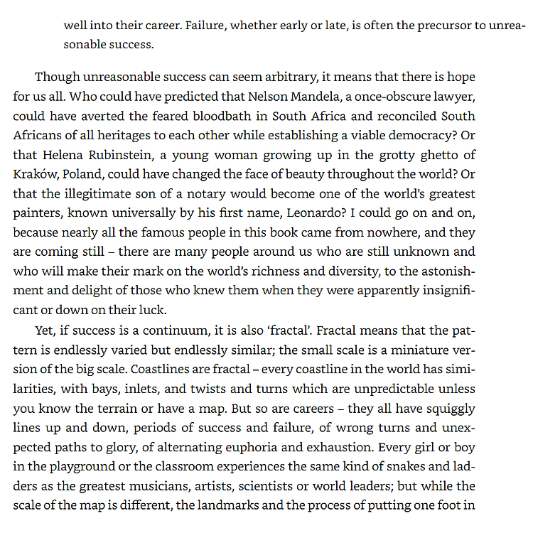 The pattern of success is fractal. It is endlessly varied but endlessly similar. Success does not require genius, consistency, all-round ability, a safe pair of hands or even basic competence. If it did, most of the people in this book would not have impacted the world as they did.