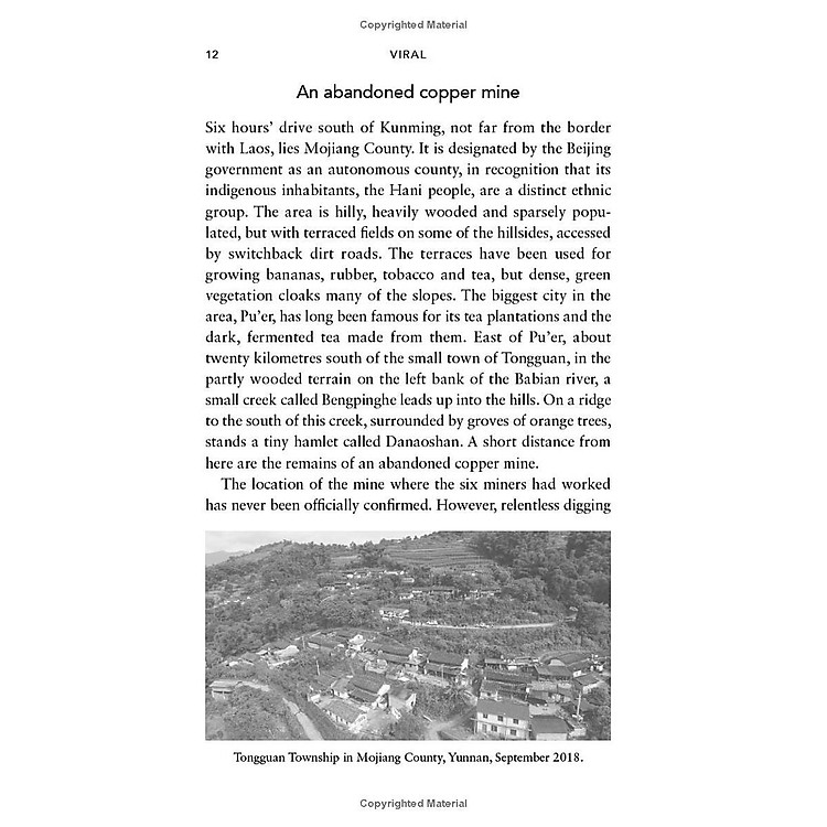 In this uniquely insightful book, a scientist and a writer join forces to try to get to the bottom of how a virus whose closest relations live in bats in subtropical southern China somehow managed to begin spreading among people more than 1,500 kilometres away in the city of Wuhan. They grapple with the baffling fact that the virus left none of the expected traces that such outbreaks usually create: no infected market animals or wildlife, no chains of early cases in travellers to the city, no smouldering epidemic in a rural area, no rapid adaptation of the virus to its new host—human beings.