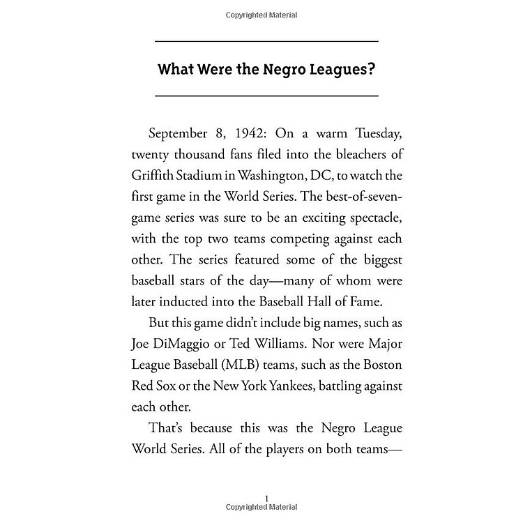 - Tựa sách: “What Were The Negro Leagues? (What Was?)”