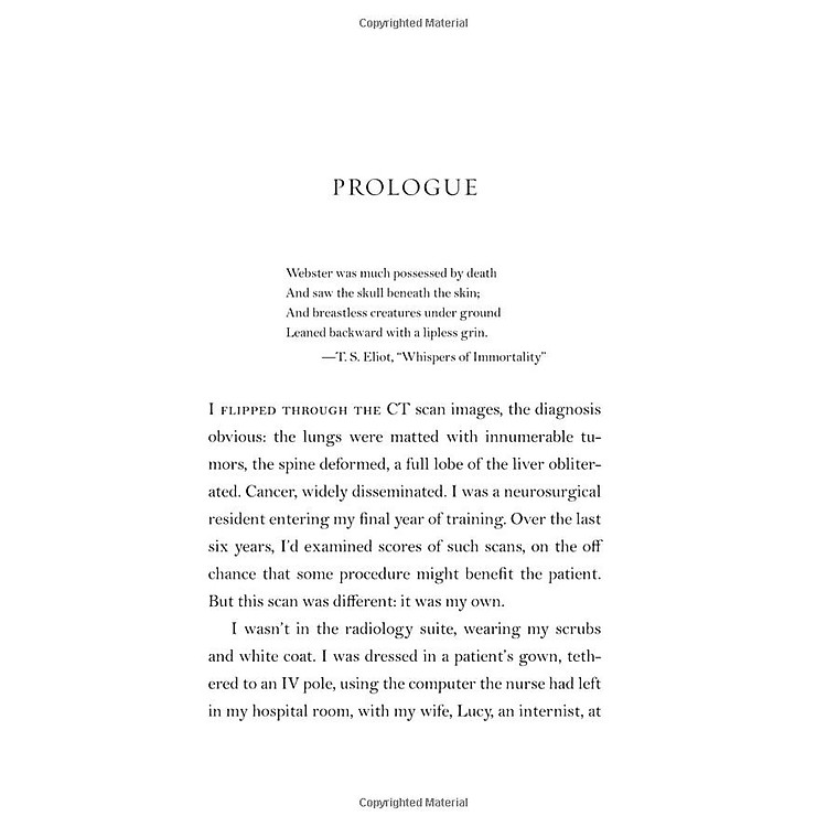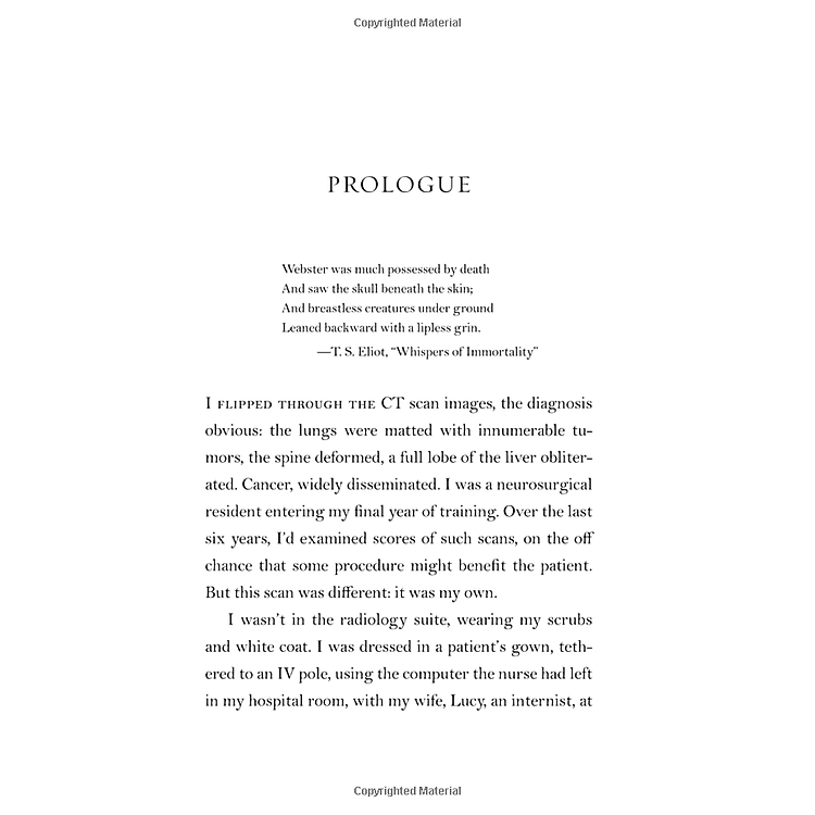 At the age of thirty-six, on the verge of completing a decade’s training as a neurosurgeon, Paul Kalanithi was diagnosed with inoperable lung cancer. One day he was a doctor treating the dying, the next he was a patient struggling to live.
