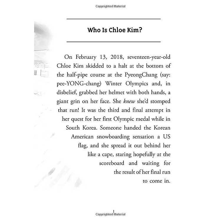 At the 2018 Winter Olympics in South Korea, Chloe Kim became the youngest woman to ever receive an Olympic gold medal in snowboarding, and she was only seventeen! This amazing accomplishment led to Chloe winning three ESPY awards, becoming the inspiration for her own Barbie doll, and gracing the cover of Sports Illustrated. She is also the only athlete to have won three gold medals at the X Games before turning sixteen. Learn about Chloe’s brilliant career and her lifelong love of snowboarding in this biography for young readers.