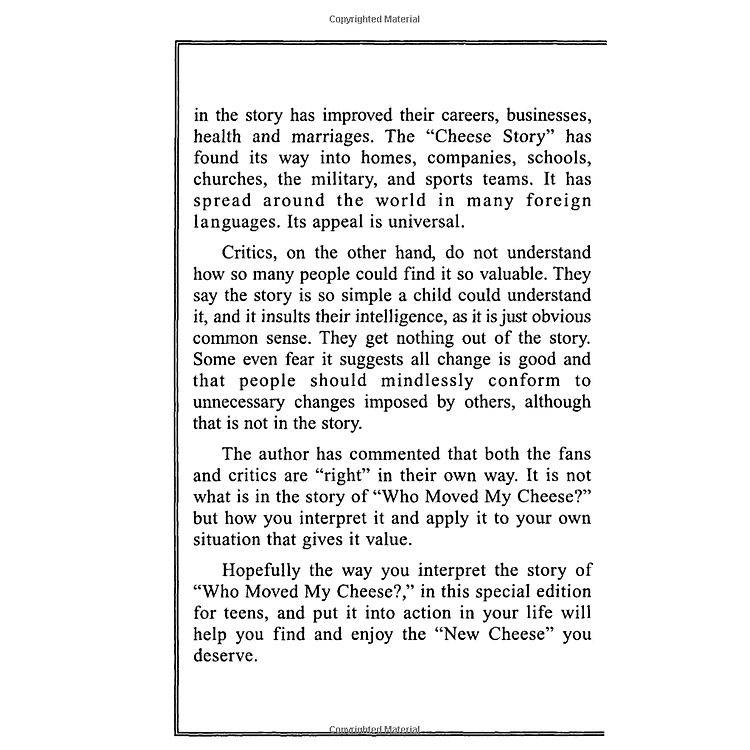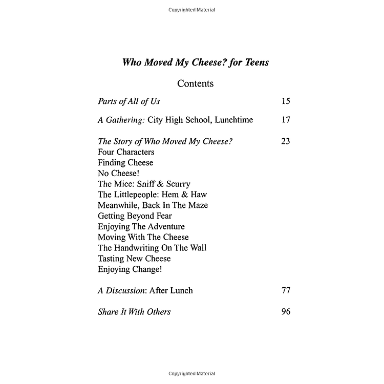 - Sách “Who Moved My Cheese For Teens” giúp thanh thiếu niên đối phó với những thay đổi trong cuộc sống.